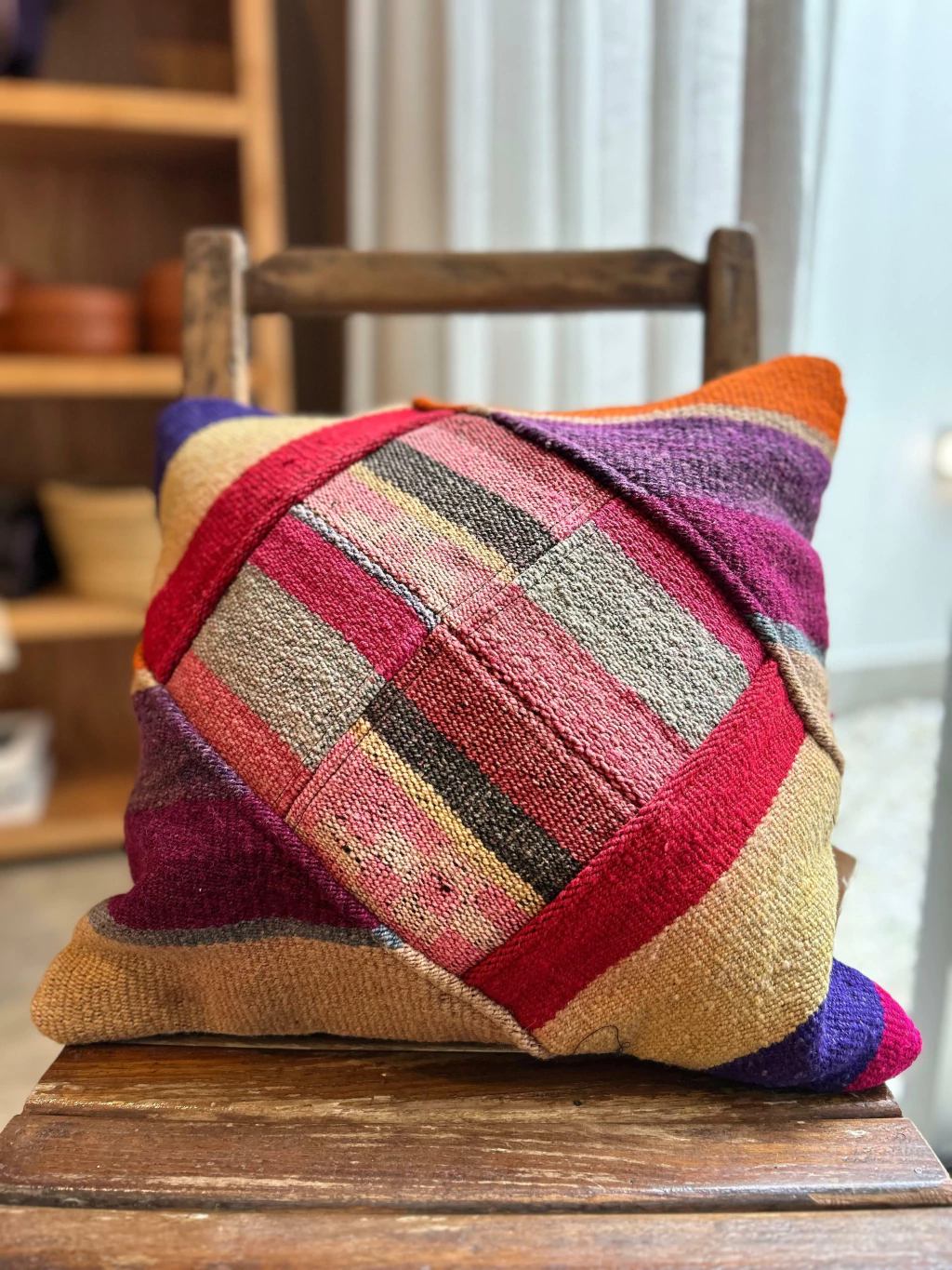 Producto artesanal, tejidos al telar en lana de oveja/ llama. Son tejidos artesanales que pueden presentar detalles por su elaboración a mano, como por ejemplo, algunas decoloraciones, hilos gastados, entre otros.